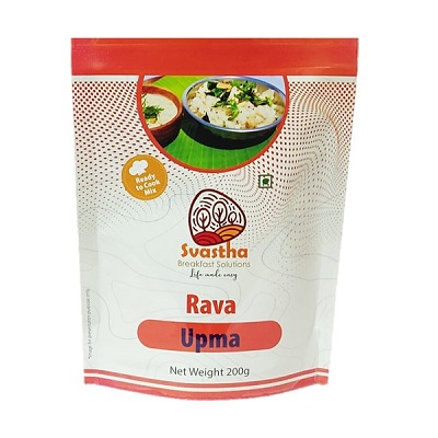 Serves 2. Add Upma mix to the boiling water, Stir constantly for 5-7 minutes on low to medium flame. Mix well and Serve hot with Coconut Chutney or Svastha Chutney Podi.