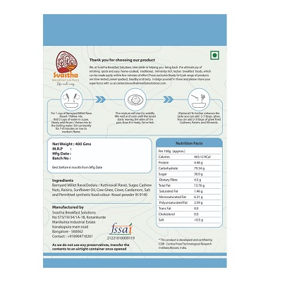 HomeInstant MixesInstant Rava Kesari / Halwa Mix Barnyard Millet Rava Kesari / Halwa Mix – Ready to Cook 400g